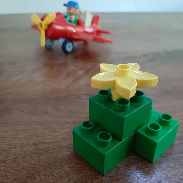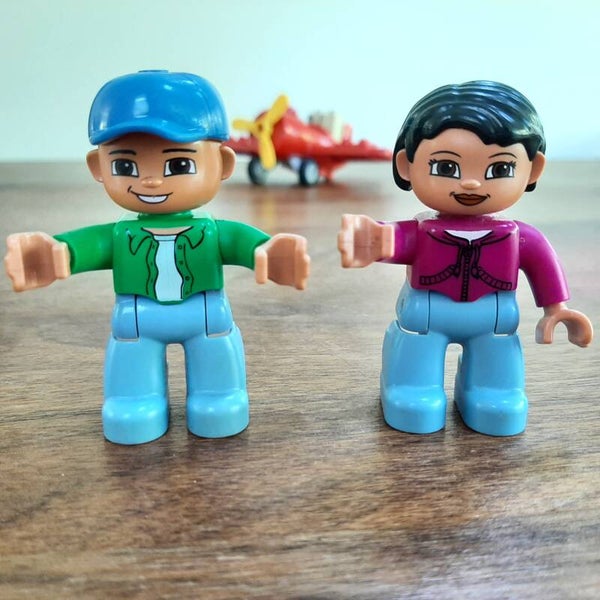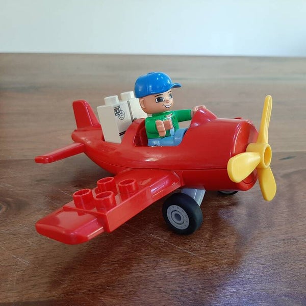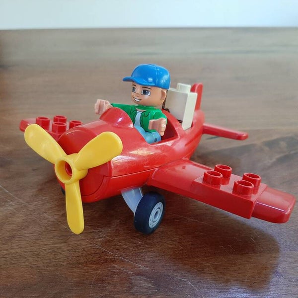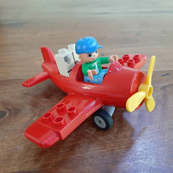 Duplo Town 5592 My First Plane. Helemaal compleet. Kwaliteit van de Duplo: 8/10 (benen van de piloot een beetje verkleurd, pakket met gebruikssporen.