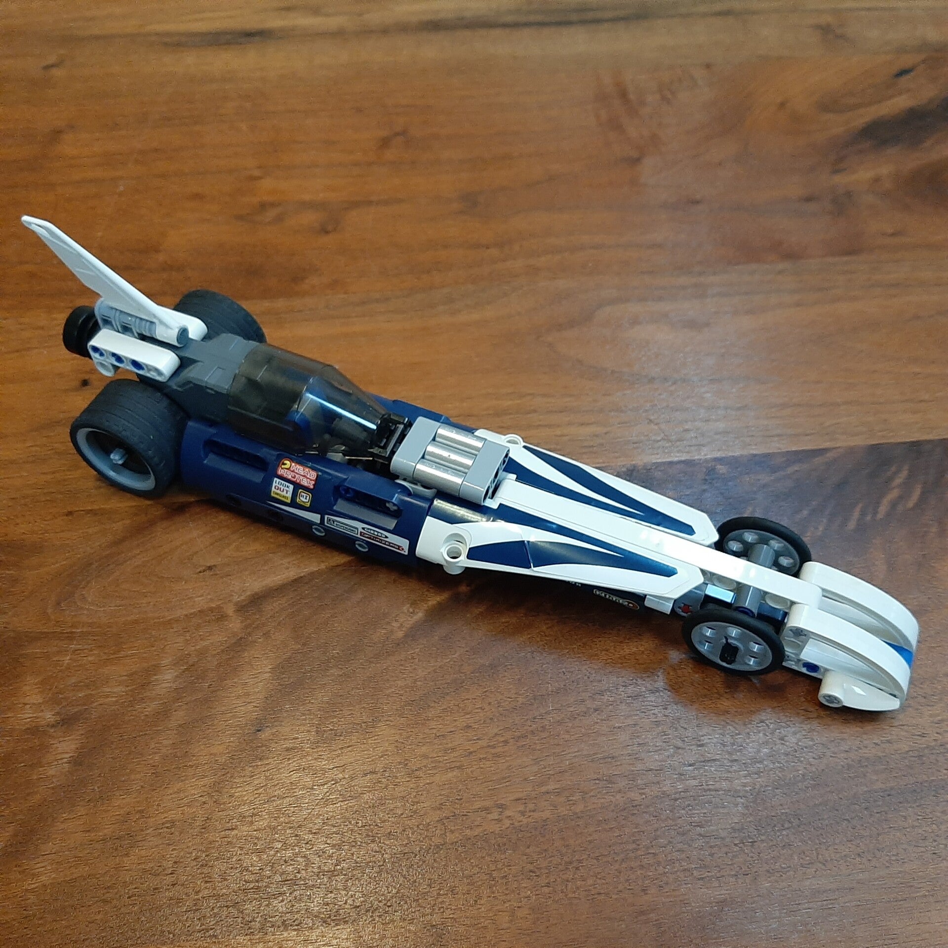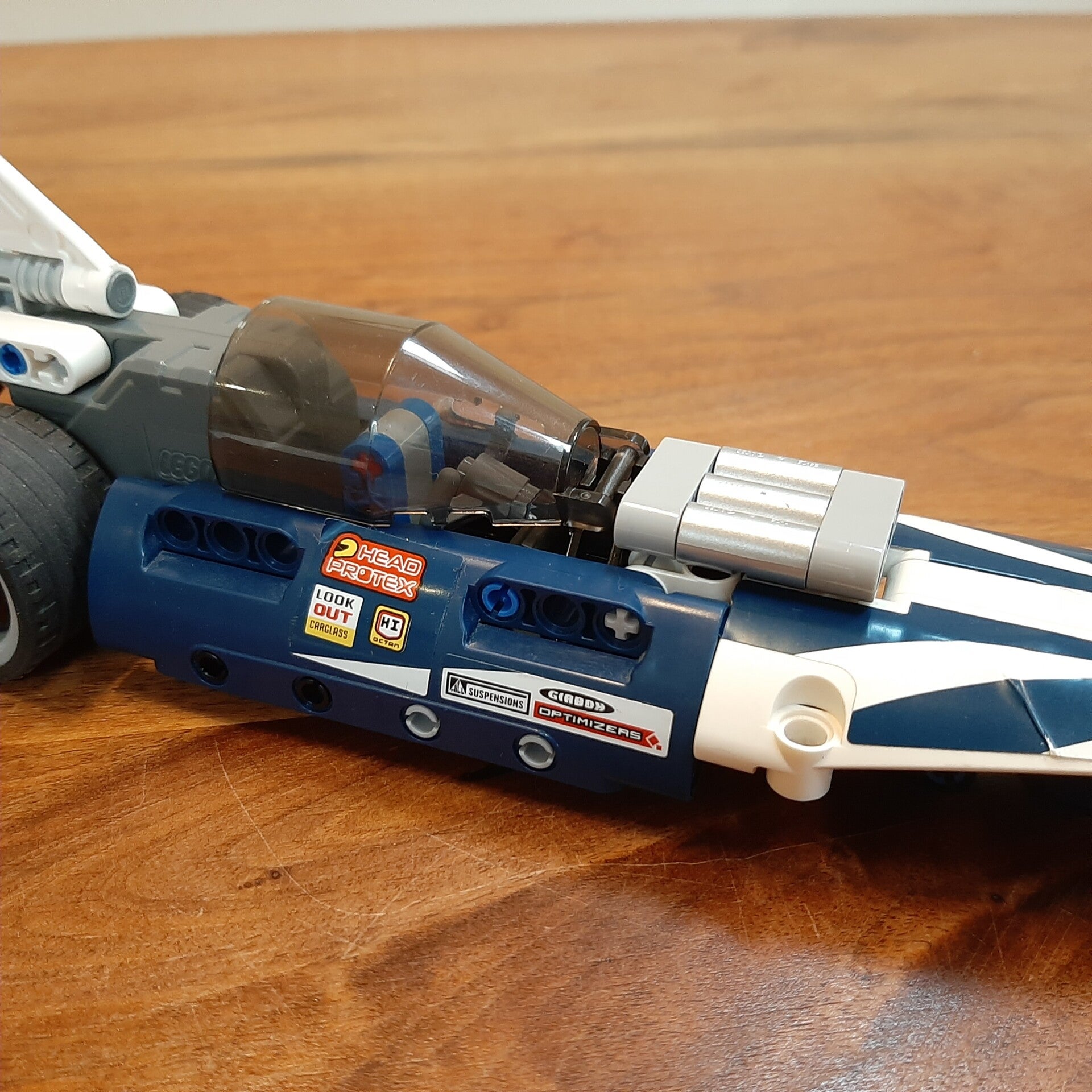 Lego Technic 42033 Record Breaker. Mooie pull back racer. Helemaal compleet en inclusief de originele bouwinstructies. Kwaliteit van de Lego: 9/10, kwaliteit van de instructies: 9/10, kwaliteit van de stickers: 7/10 (twee stickers zijn verkeerd geplakt, één is geboggeld en één laat los).