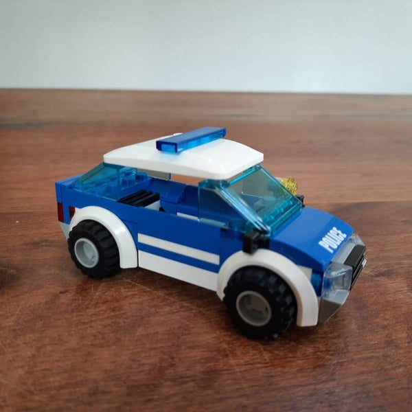 Lego City 4436 Patrol Car. Helemaal compleet, maar zonder bouwinstructies. Kwaliteit van de Lego: 9/10 (lichte verkleuring in het wit va de slagboom), kwaliteit van de stickers: 8/10 (wat scheef geplakt en eentje ontbreekt, op de zijkant van de auto).