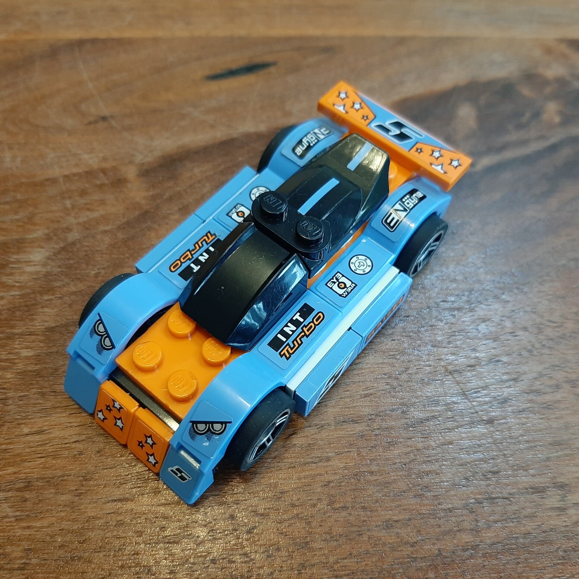 Lego Racers 8193 Blue Bullet. Helemaal compleet, maar zonder bouwinstructies. Kwaliteit van de Lego: 9/10, kwaliteit van de stickers: 8/10 (de twee stickers bij de achterlichten ontbreken).