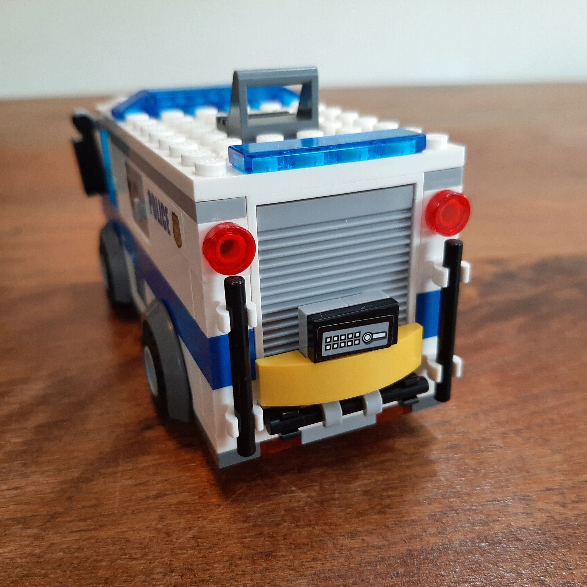 Lego City 60142 Money Transporter. Helemaal compleet, maar zonder bouwinstructies. Kwaliteit van de Lego: 9/10, kwaliteit van de stickers: 8/10 (beetje scheef geplakt en één sticker ontbreekt).