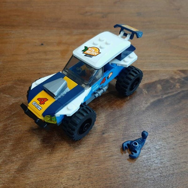 Lego City Race 60218Desert Rally Racer. Helemaal compleet en inclusief de originele bouwinstructies. Kwaliteit van de Lego: 9/10, kwaliteit van de instructies: 8/10 (bevat een paar vouwen, verder netjes), kwaliteit van de stickers: 8/10