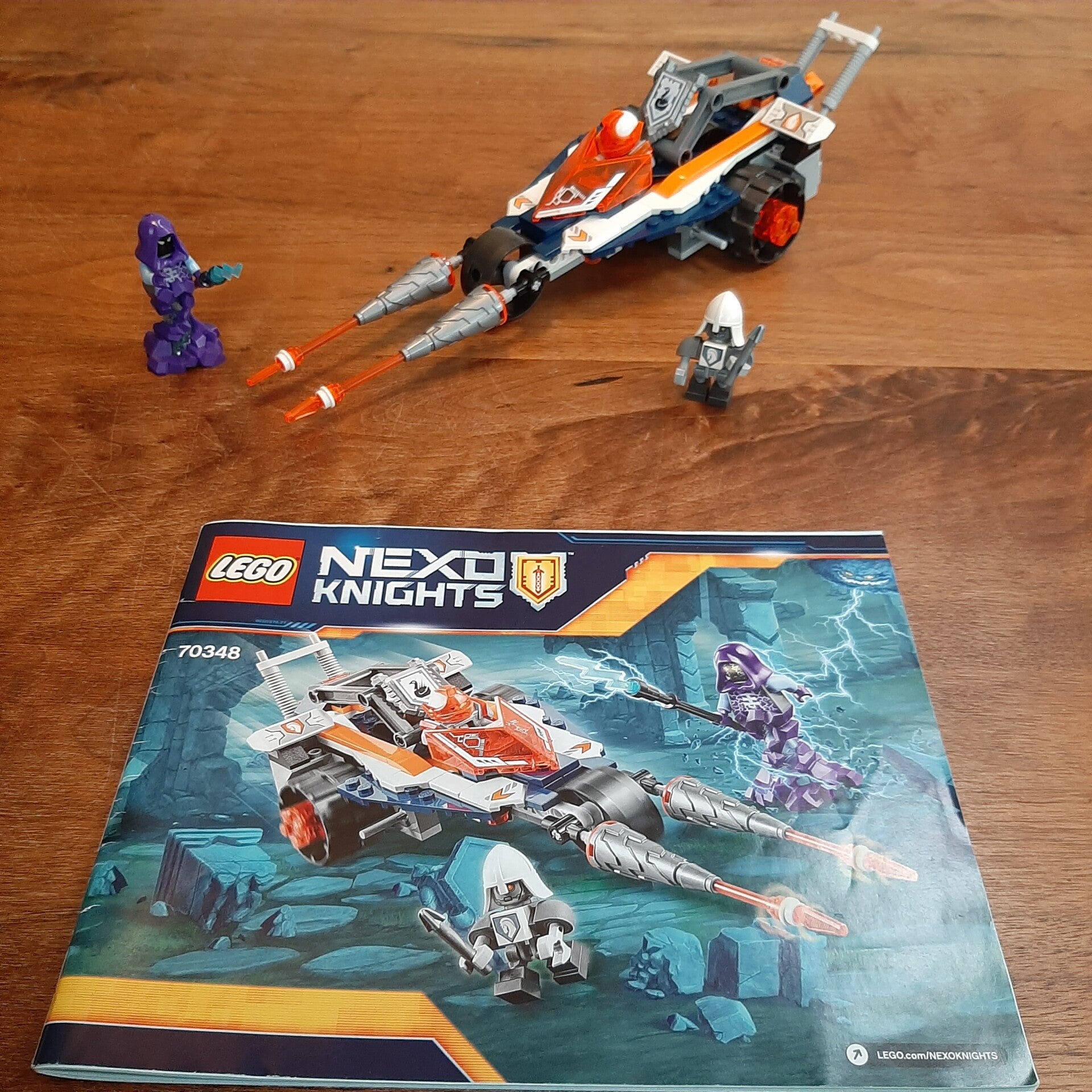 Lego Nexo Knights 70348 Lance's Twin Jouster. Set uit 2017 die te combineren is met set 70366 (binnenkort ook in onze collectie) tot één grote set. Helemaal compleet en inclusief de originele bouwinstructies. Kwaliteit van de Lego: 9/10, kwaliteit van de instructies: 9/10, kwaliteit van de stickers: 8/10.