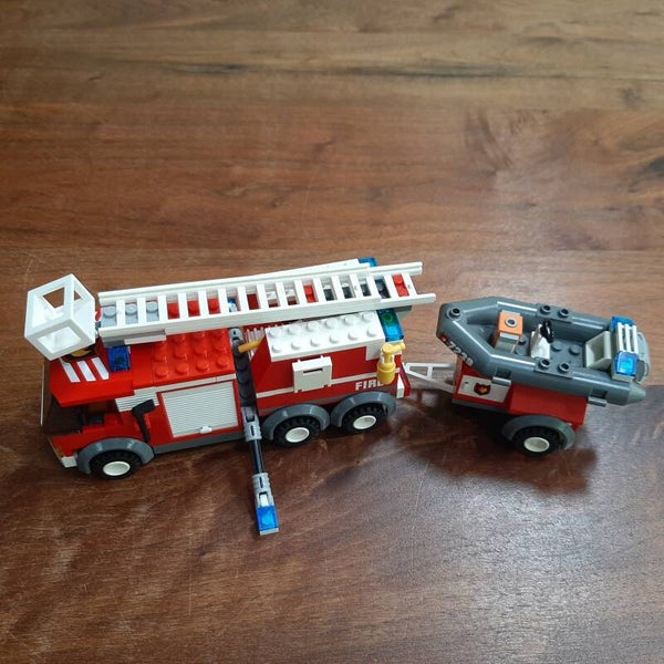 Lego City 7239 Fire Truck. Set uit 2005 met 208 onderdelen en twee minifiguren. Helemaal compleet, maar zonder bouwinstructies. Kwaliteit van de Lego: 8/10 (beetje verkleuring van de witte onderdelen), kwaliteit van de stickers: 8/10 (netjes, maar twee stickers zijn officieel niet op de juiste plaats op de onderdelen geplakt)