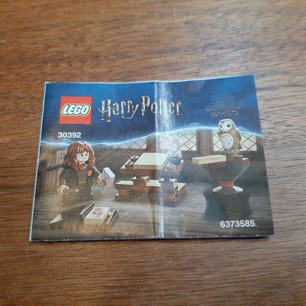 Lego Harry Potter 30392 Hermione's Study Desk. Klein setje uit 2021 met 27 onderdelen en 1 minifiguur. Setje wordt verkocht zonder chocolate frog card, maar is verder helemaal compleet, inclusief de originele bouwinstructies. Kwaliteit van de Lego: 9/10, kwaliteit van de instructies: 9/10.