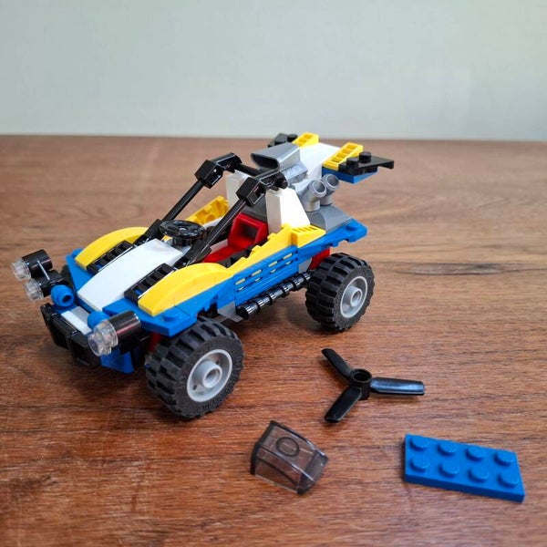Lego Creator 31087 Dune Buggy. 3-in-1 set uit 2019 met 147 onderdelen. Kan ook gebouwd worden als propellervliegtuig of quad. Kwaliteit van de Lego: 9/10, kwaliteit van de instructies: 9/10.