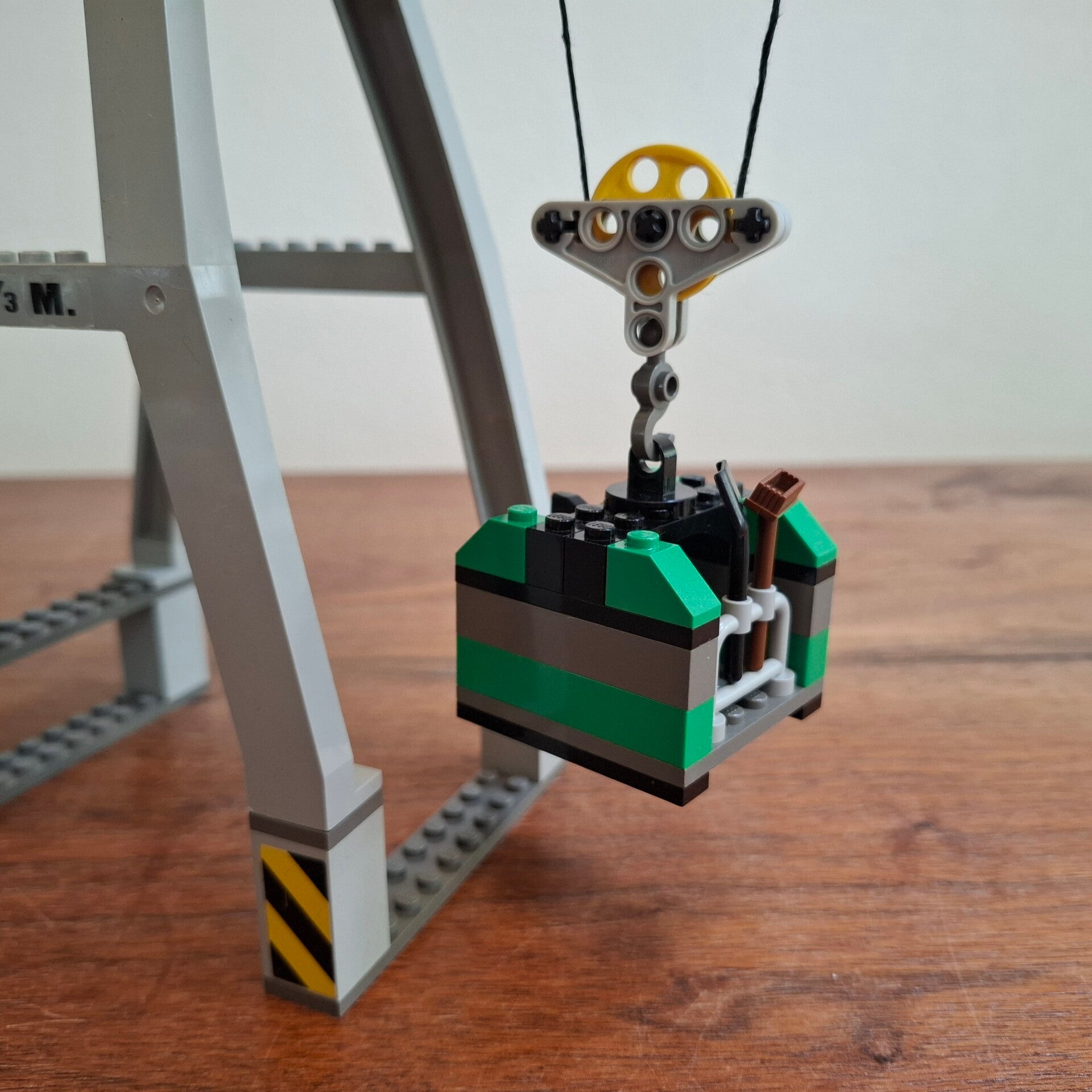 Lego Train 9V 4514 Cargo Crane. Set uit 2003 met 169 onderdelen en 2 minifiguren. Het touwtje is niet meer origineel en is 67 cm lang (in plaats van 75 cm). Kwaliteit van de Lego: 9/10, kwaliteit van de stickers: 8/10 (5 stickers ontbreken).