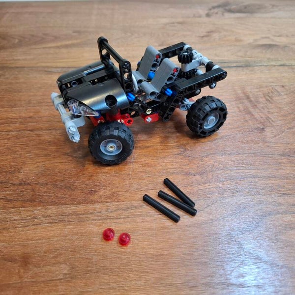 Lego Technic 8066 Off-Roader. Set uit 2011 met 141 onderdelen. Te bouwen als terreinwagen of buggy (met online nog meer modellen om te bouwen). Helemaal compleet, maar zonder bouwinstructies. De bouwinstructies zijn natuurlijk wel ye vinden in de Lego Builder app of bij de klantenservice op de Lego website. Kwaliteit van de Lego: 9/10.