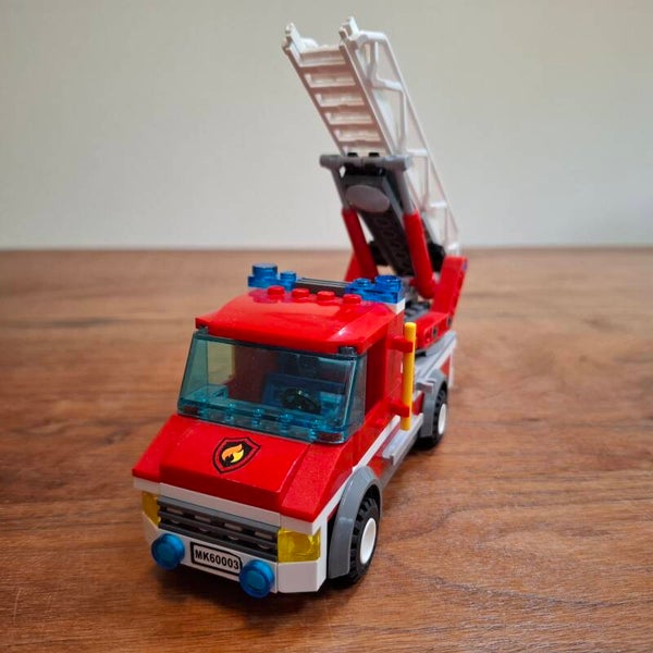 Lego City 60003 Fire Emergency. Set uit 2013 met 285 onderdelen en 3 minifiguren. Het vuur kan weggedraaid worden, als de brand is geblust door de dappere brandweerlieden. Helemaal compleet, maar zonder bouwinstructies. Kwaliteit van de Lego: 8/10 (hele lichte verkleuringen en sommige stukjes met hele kleine hapertjes), kwaliteit van de stickers: 8/10.