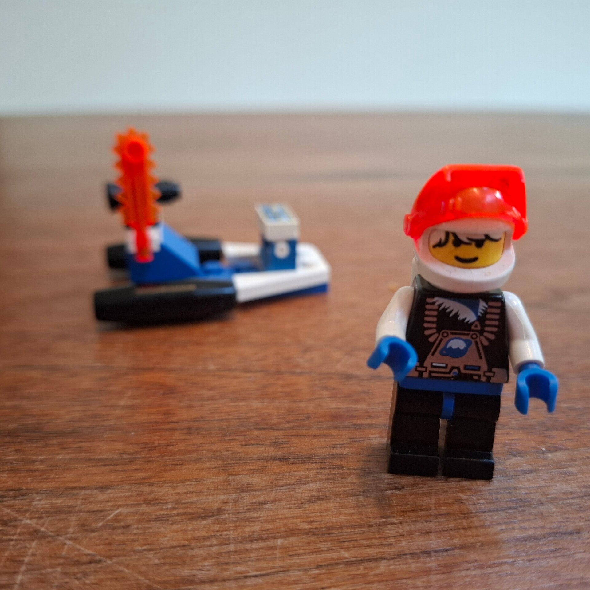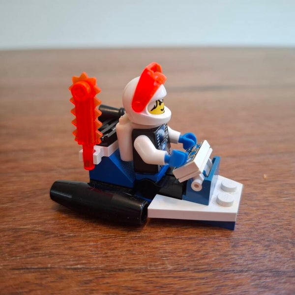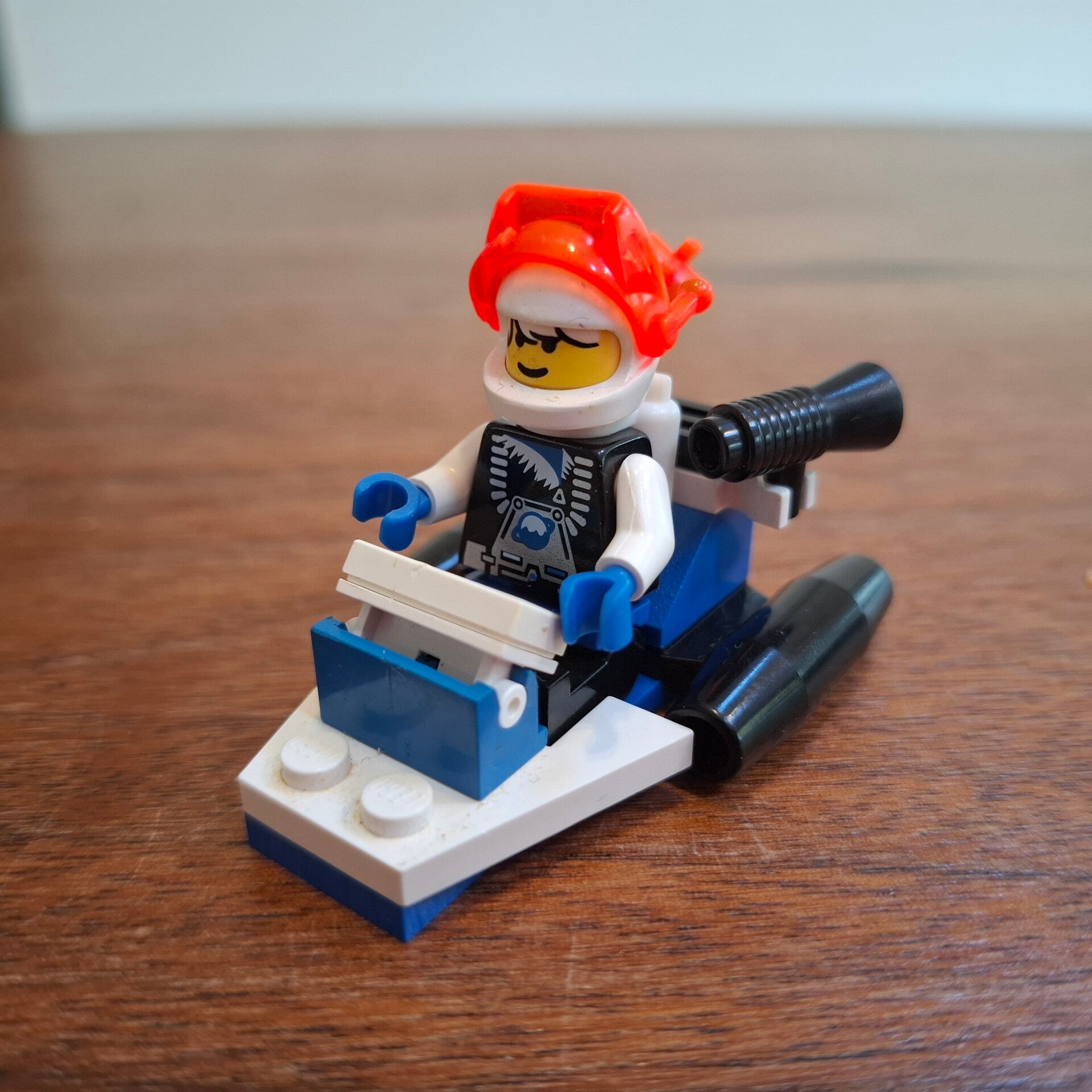 Lego Space 1731 Ice Planet Scooter. Setje uit 1994 met 13 onderdelen en 1 minifiguur. Helemaal compleet, maar zonder bouwinstructies. Kwaliteit van de Lego: 9/10.