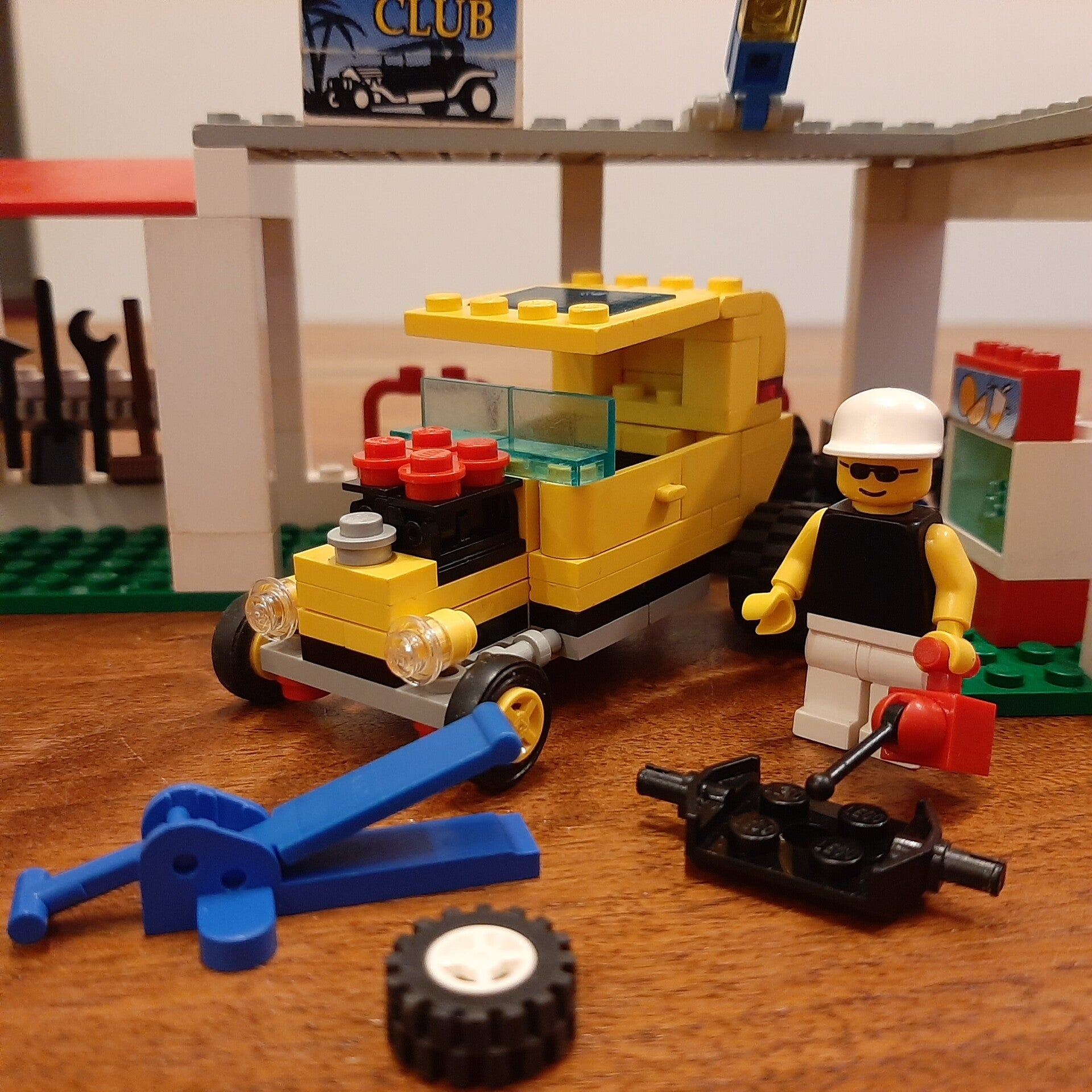 Lego Town 6561 Hot Rod Club. Set is helemaal compleet, maar de Lego al wat ouder. Zonder bouwinstructies. Kwaliteit van de Lego 7/10, kwaliteit van de stickers 6/10.