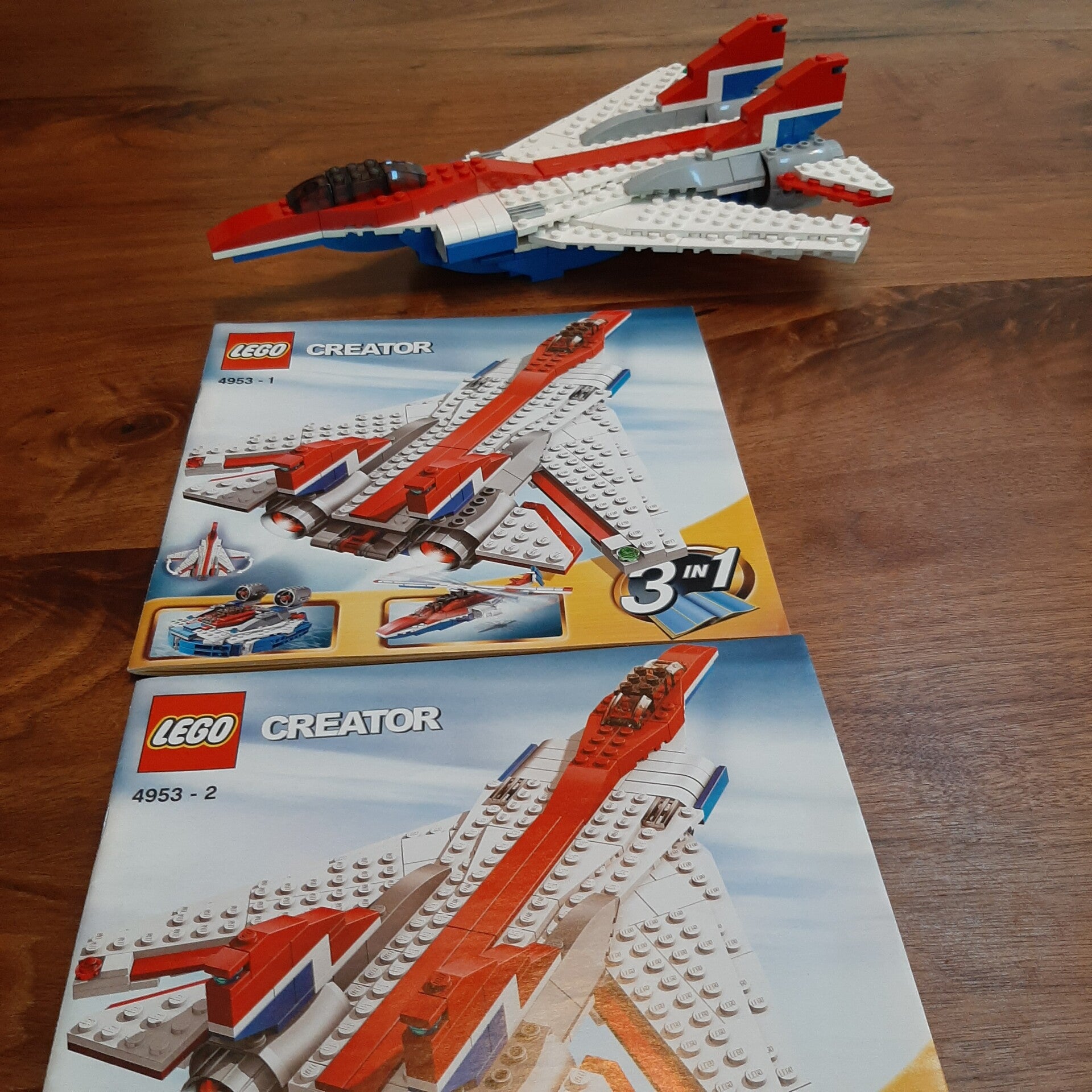 Lego Creator 4953 Fast Flyers. Set is helemaal compleet en inclusief de 2 zeer nette originele boekjes met bouwinstructies (10/10). De Lego is ook netjes: 8/10. Kan ook gebouwd worden als helikopter of boot.
