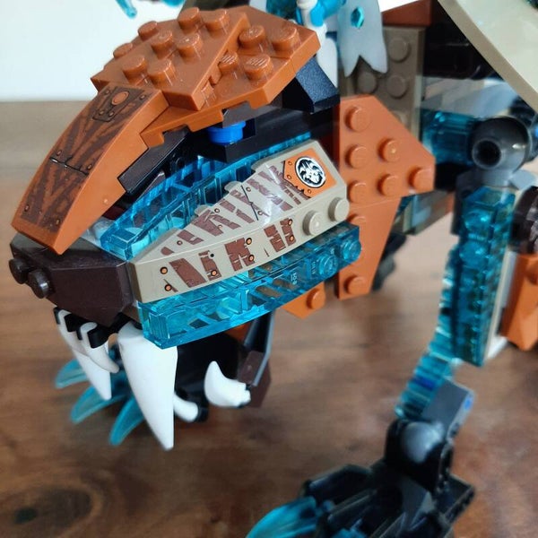 Lego Legends of Chima 70143 Sir Fangar's Saber Tooth Walker. Helemaal compleet en inclusief de originele bouwinstructies. Kwaliteit van de Lego: 9/10, kwaliteit van de instructies: 8/10 (boekje 1: 9/10), kwaliteit van de stickers: 9/10 (netjes geplakt, 1 sticker ontbreekt, op de motorfiets).