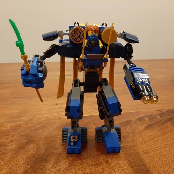 Lego Ninjago 70754 Electro Mech. De set is helemaal compleet, er ontbreken alleen drie stickers (op voet, hand en oog van de robot, zie foto's). Zonder bouwinstructies. Kwaliteit Lego: 9/10, kwaliteit stickers: 6/10.