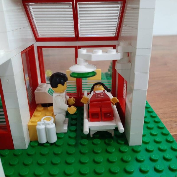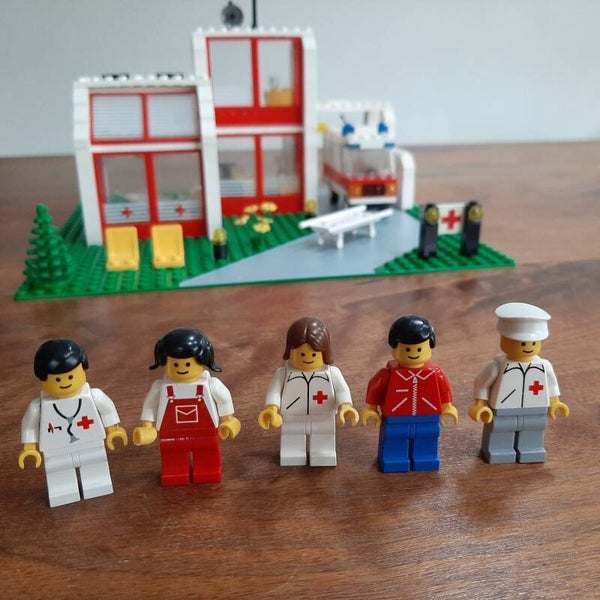 Lego Town 6380 Emergency Treatment Center (St. Mary's Hospital). Helemaal compleet en inclusief de originele bouwinstructies. Kwaliteit van de Lego: 7/10 (lichte verkleuringen en/of kleine hapertjes bij sommige onderdelen, grondplaat zeer netjes), kwaliteit van de instructies: 8/10 (zeer netjes, maar de nietjes zijn los), kwaliteit van de stickers: 7/10.