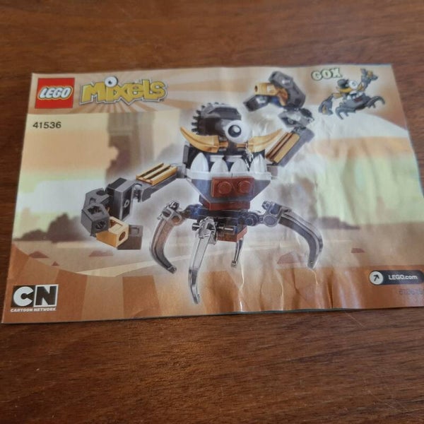 Lego Mixels 41536 Gox. Helemaal compleet en inclusief de originele bouwinstructies. Het boekje met bouwinstructies is helaas nat geweest en daardoor wat verkreukeld. Kwaliteit van de Lego: 9/10, kwaliteit van de instructies: 6/10.