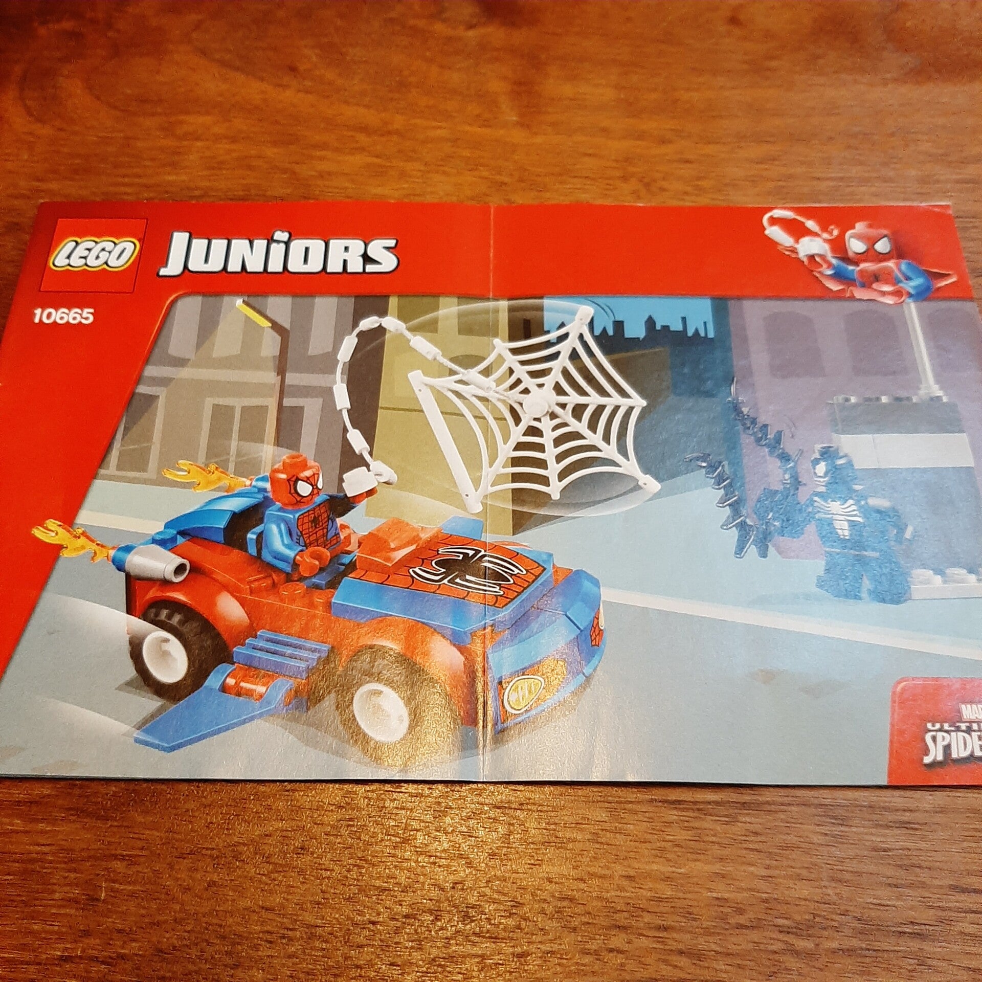 Lego Juniors 10665 Pider-Man: Spider-Car Pursuit. Helemaal compleet en inclusief de originele bouwinstructies. Kwaliteit van de Lego: 9/10, kwaliteit van de instructies: 10/10.