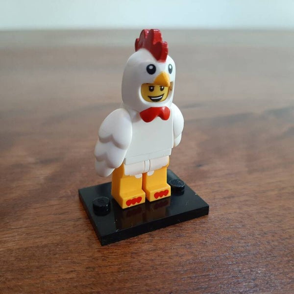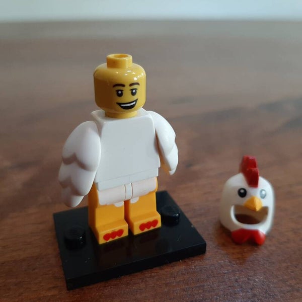 Lego Collectible Minifigures col09-7 Chicken Suit Guy. Collectible Minifigure uit serie 9. Helemaal compleet, maar zonder instructies. Kwaliteit van de Lego: 9/10.