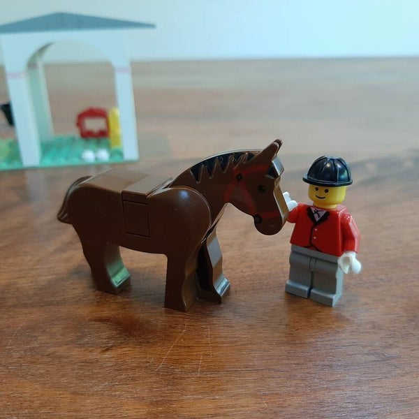 Lego Town Paradisa 6405 Sunset Stables. Leuke klassieker. Helemaal compleet en inclusief de originele bouwinstructies. Kwaliteit van de Lego: 7/10 (ouder en sommige onderdelen een beetje verkleurd en/of met kleine streepjes en krasjes), kwaliteit van de instructies: 6/10 (op de voorkant is getekend, ezelsoortjes, gekreukeld) verder prima te gebruiken).