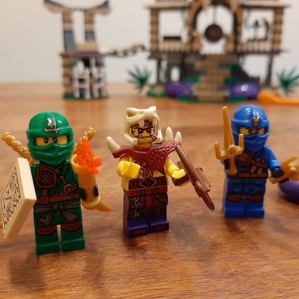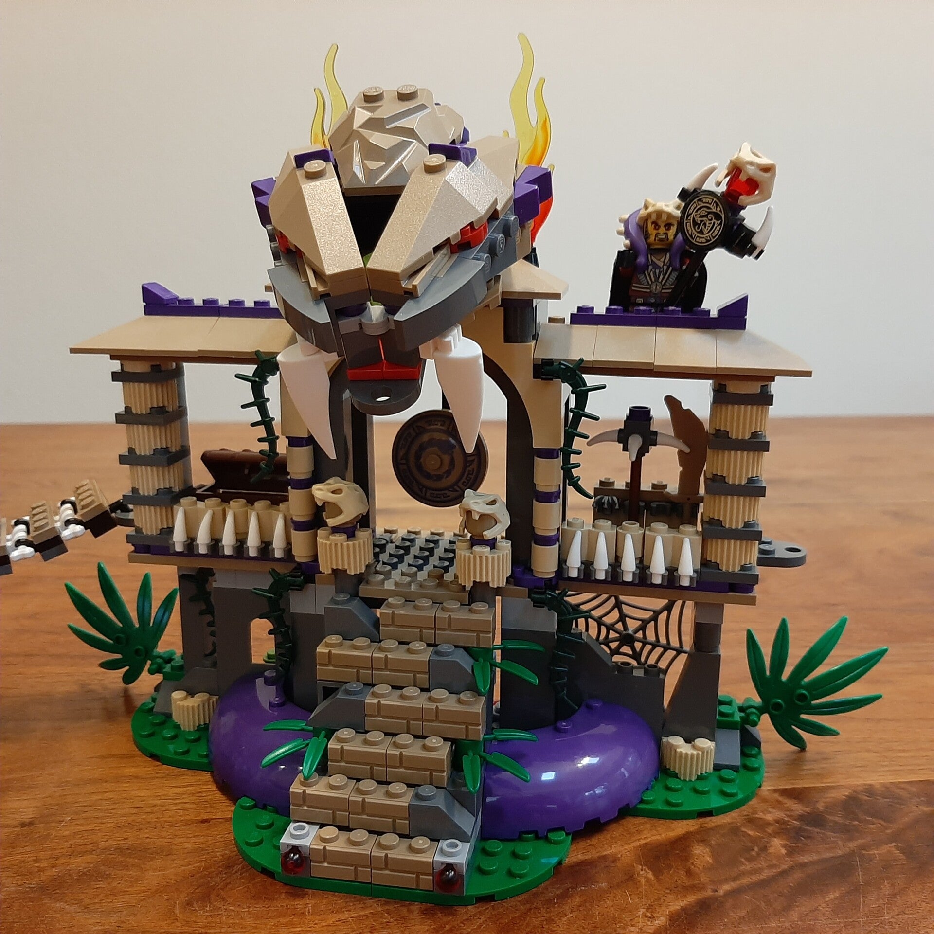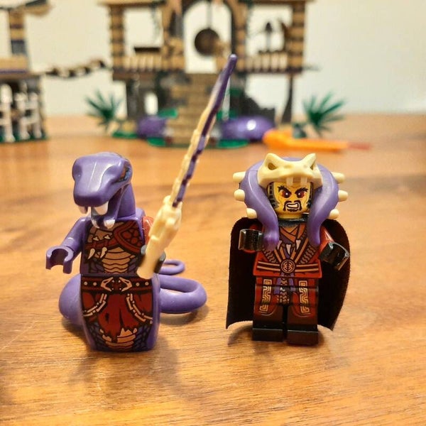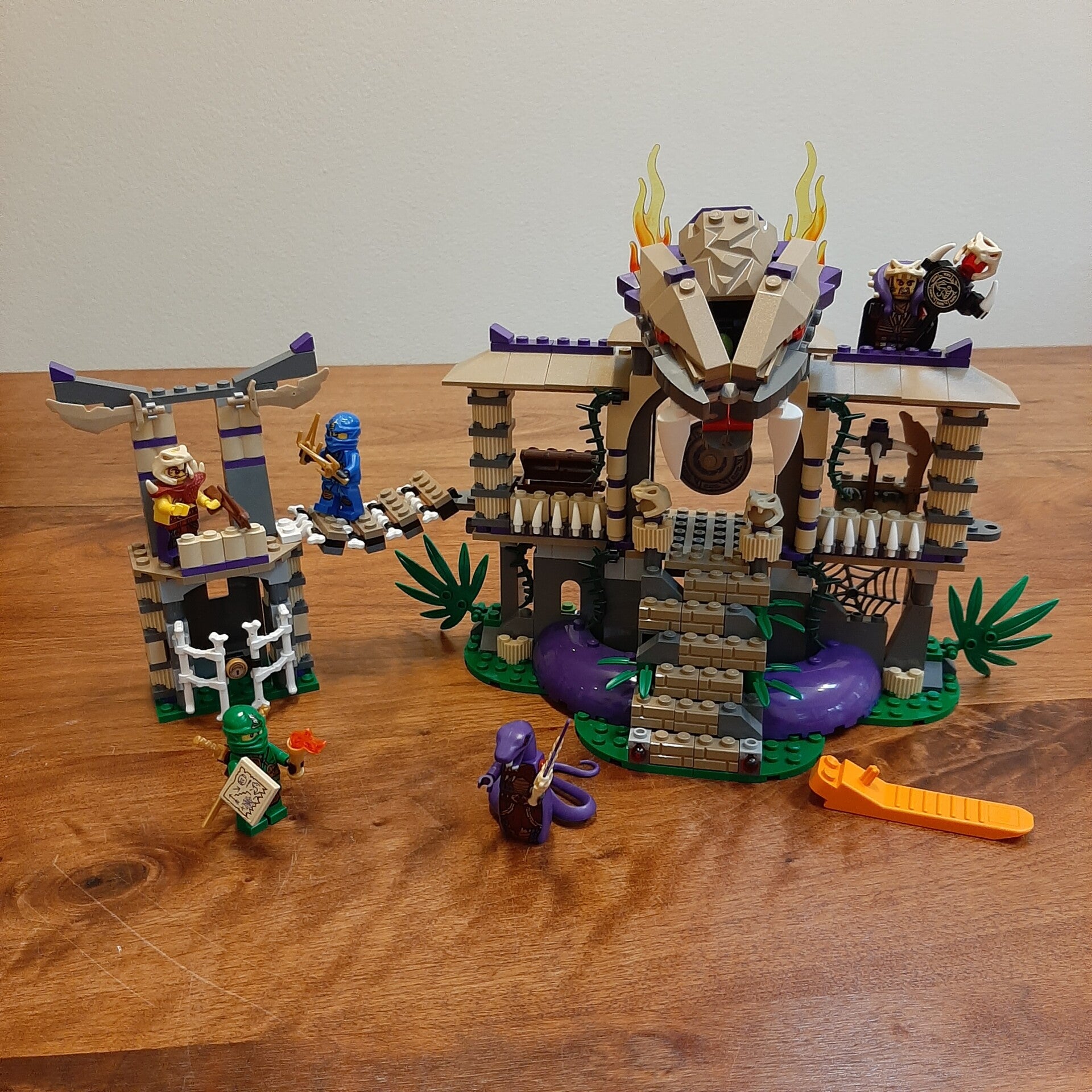 Lego Ninjago Tournament of Elements 70749 Enter the Serpent. Helemaal compleet en inclusief de originele bouwinstructies. Kwaliteit van de Lego: 9/10, kwaliteit van de instructies: 8/10 (kleine scheurtjes in de kaft), kwaliteit van de stickers: 8/10 (compleet, soms een beetje scheef geplakt, rand van de sticker met de kaart zit een beetje los, zie detailfoto).