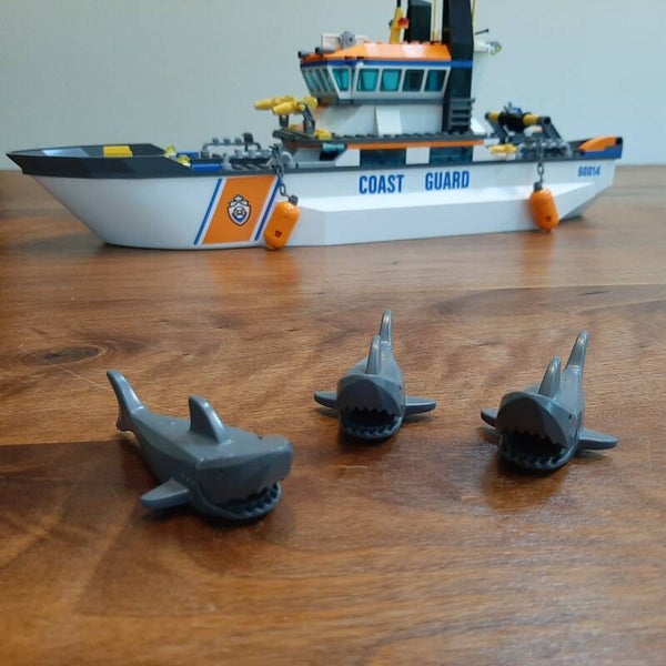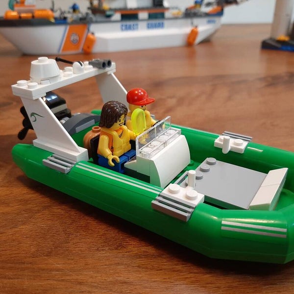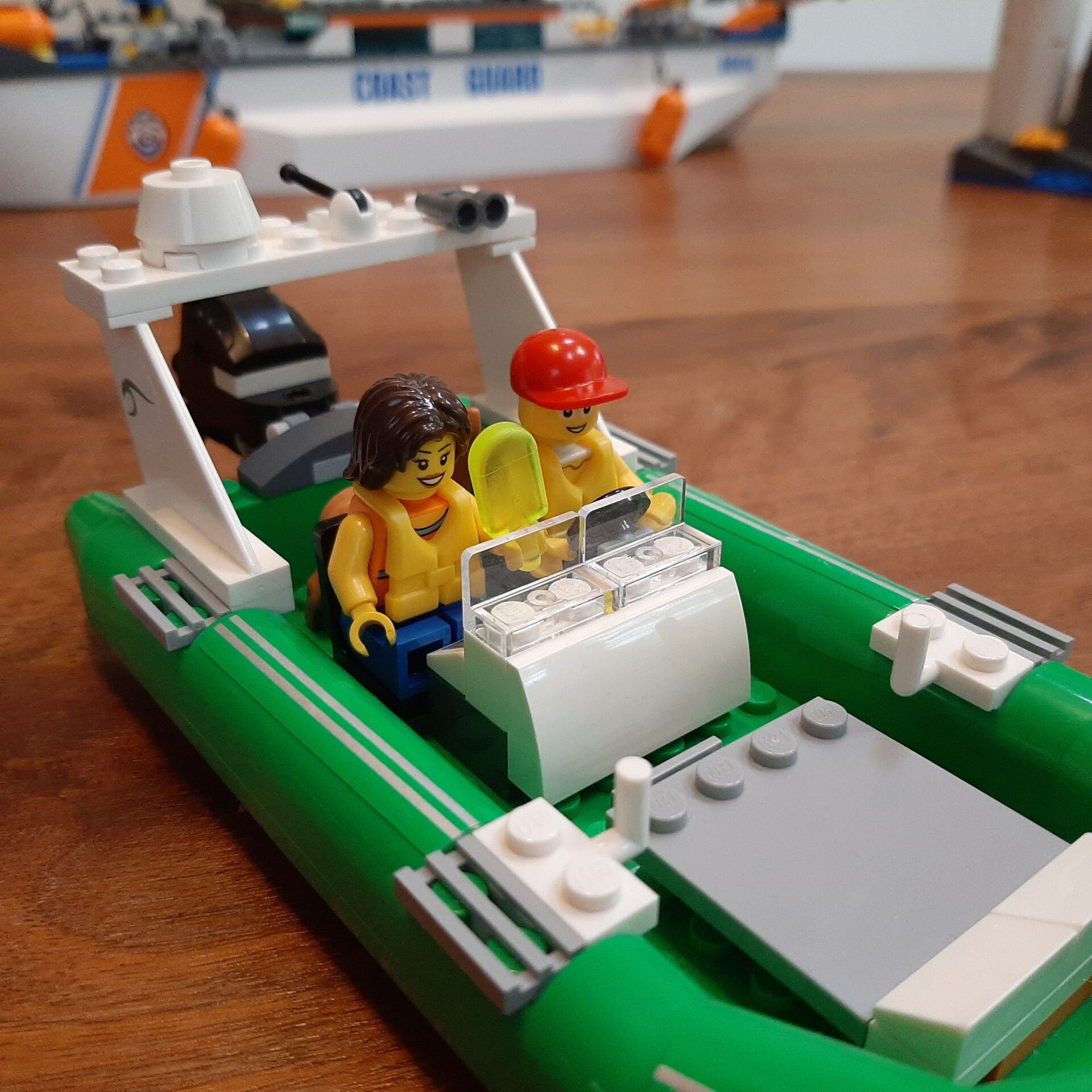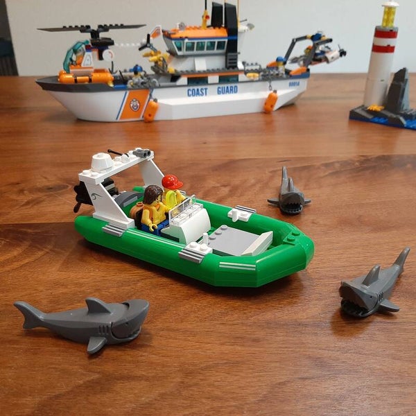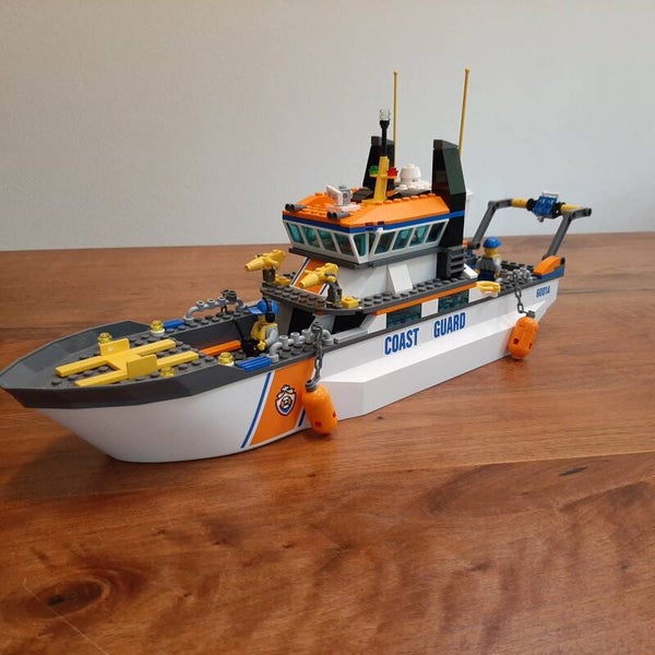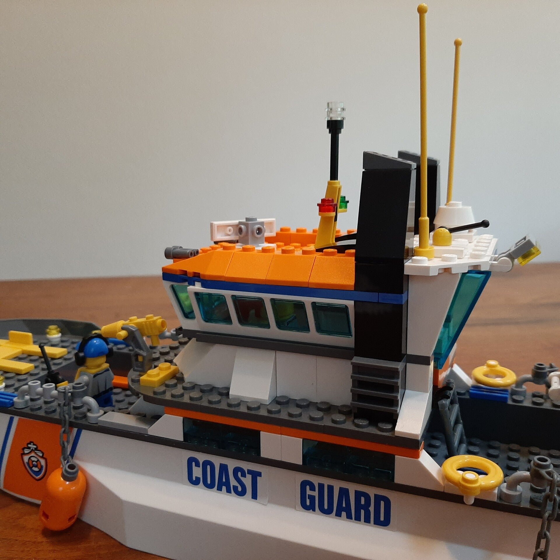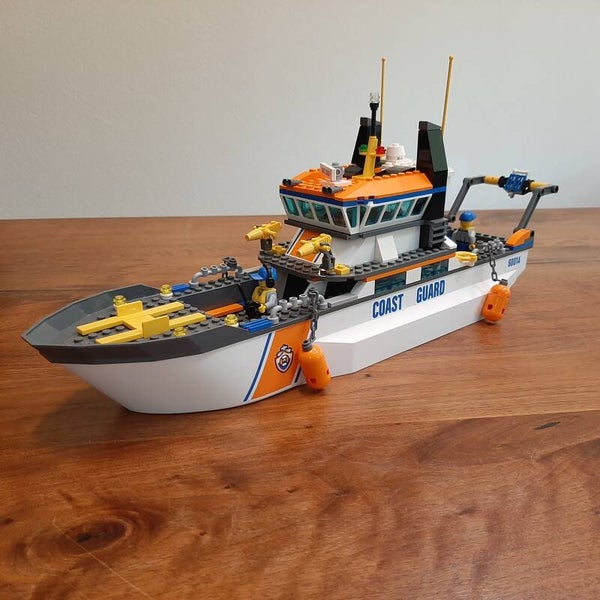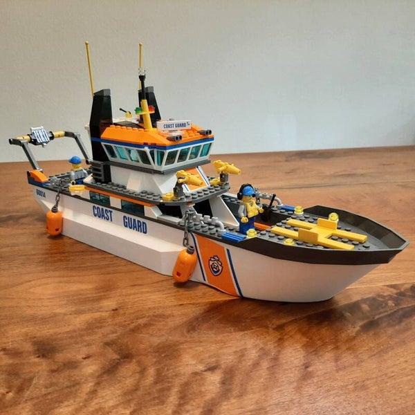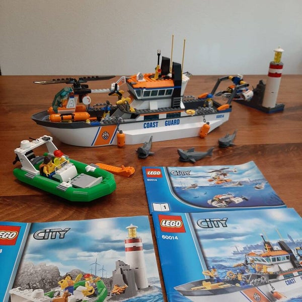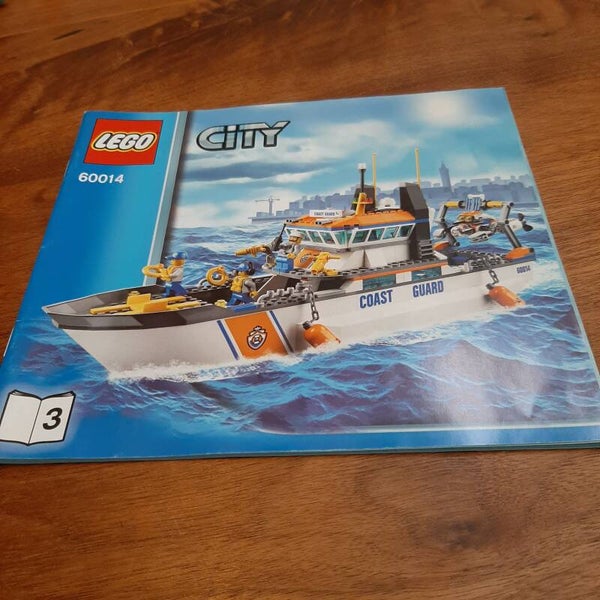 Lego City 60014 Coast Guard Patrol. Helemaal compleet en inclusief de originele bouwinstructies. Kwaliteit van de Lego: 9/10, kwaliteit van de instructies: 9/10, kwaliteit van de stickers: 8/10 (één sticker ontbreekt, achterop de boot, sommige stickers zijn scheef geplakt).