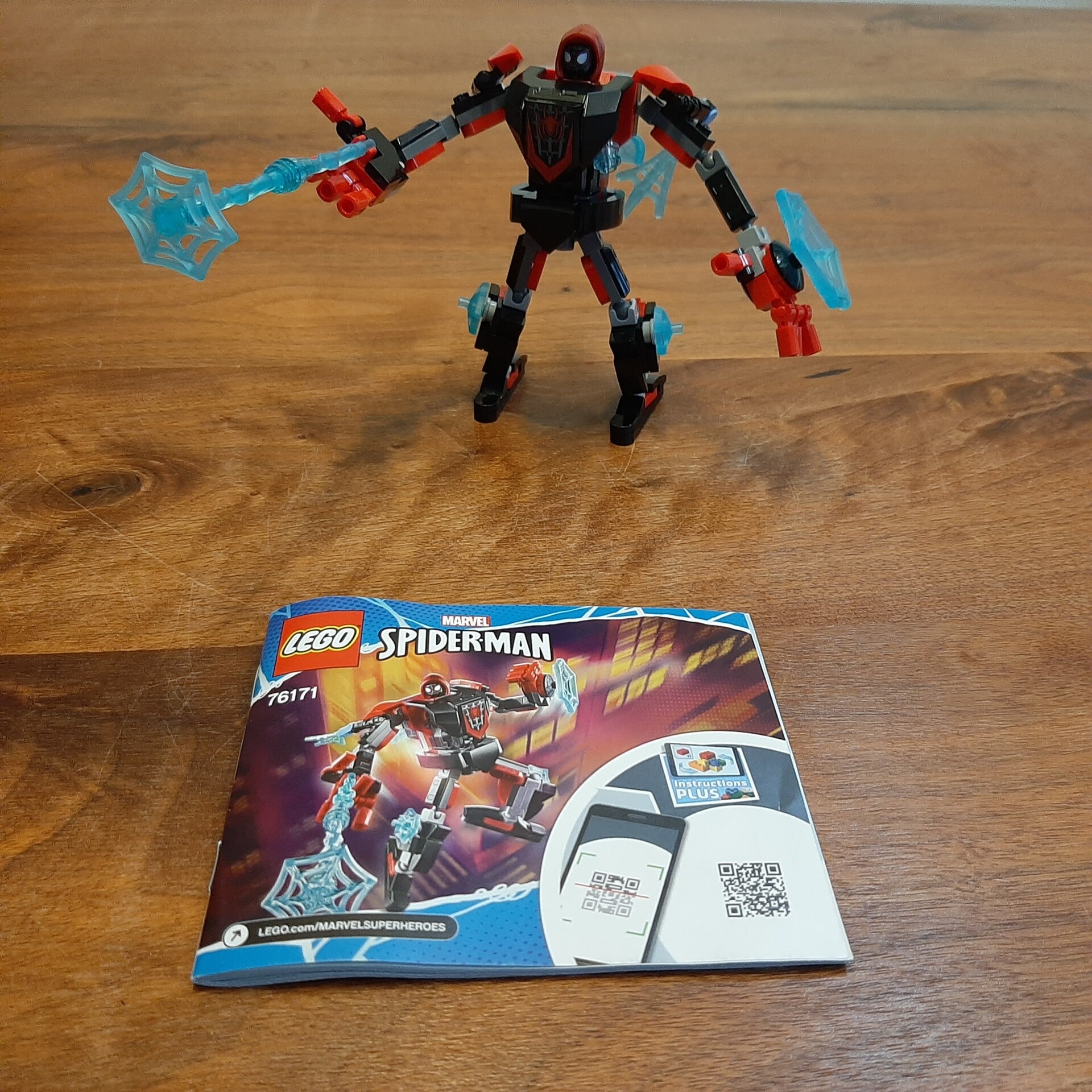 Lego Super Heroes 76171 Miles Morales Mech. Helemaal compleet en inclusief de originele bouwinstructies. Kwaliteit van de Lego: 9/10, kwaliteit van de instructies: 9/10.