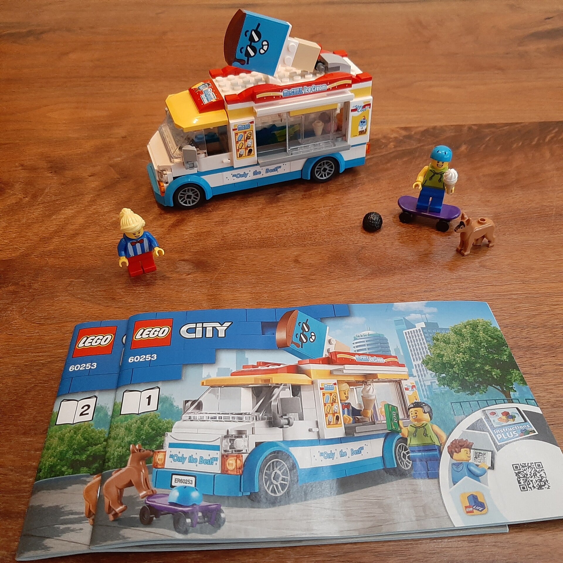 Lego City 60253 Ice-Cream Truck. Helemaal compleet en inclusief de originele bouwinstructies. Kwaliteit van de Lego: 9/10, kwaliteit van de instructies: 9/10, kwaliteit van de stickers: 9/10.