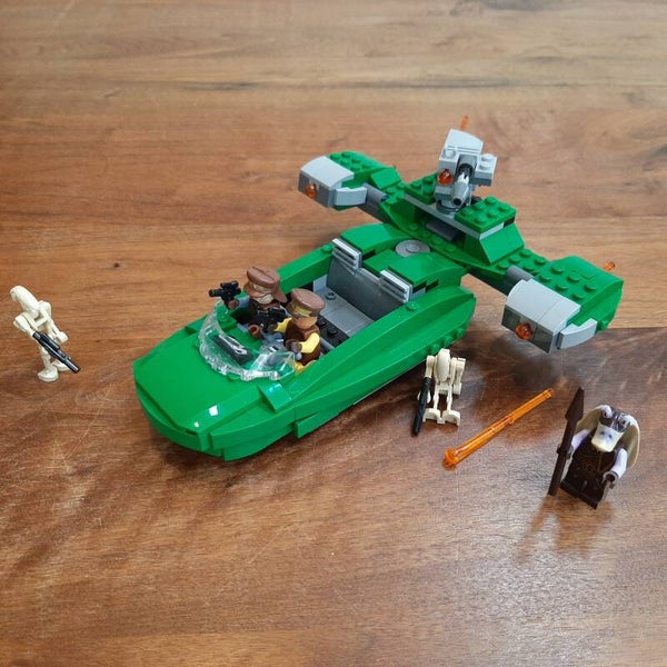 Lego Star Wars Episode 1 75091 Flash Speeder. Helemaal compleet en inclusief de originele bouwinstructies. Kwaliteit van de Lego: 9/10, kwaliteit van de instructies: 9/10.